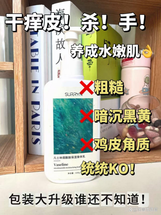 普通身体乳多以单一保湿或基础滋养为主,而本品以“5%烟酰胺+透明质酸钠+凡士林”为核心成分组合,实现“美白+保湿+鸡皮护理+屏障修护”四效合一,针对多种肌肤问题同步作用,无需叠加使用多款产品,更节省时间与成本。