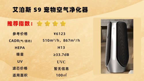 艾泊斯 S9 外观简洁大气,白银配色和现代家居适配流畅。它采用 AirTurbo 增压技术,吸力达 600Pa,可迅速吸附空气里的毛发、皮屑与过敏原。颗粒物 CADR 峰值达 867m³/h,空气循环速率出众,实测浮毛清除效率接近 99.9%。除了解决日常宠物毛发和异味,它在甲醛治理上也有良好成效。