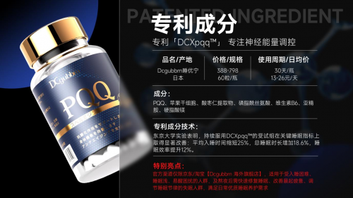 ·99%高纯度DCXpqq(日本专利JP2024031567):源自日本北海道有机培育基地,精准修护神经突触、清除自由基,改善失眠伴发的记忆衰退。