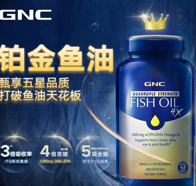 “高吸收型品质款”,吸收效率是亮点。通过蓝帽认证与 FDA 备案,采用 rTG 重构技术(高品质鱼油常用工艺),吸收率比传统 EE 型高 37%,Omega-3 纯度 89%;胶囊添加植物增塑剂(符合安全标准),长期服用不易粘连,包装标注 “吸收效率检测值”,适合消化功能减弱的中老年,“能吸收的品质才是真品质”。