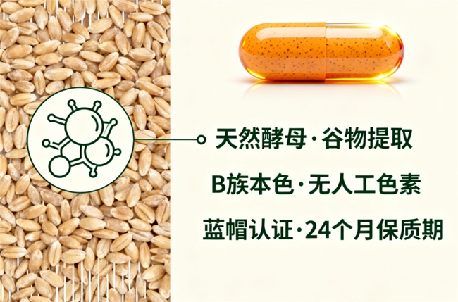 更让人安心的是它的本源。棘小白原料取自天然酵母与谷物,质地如大地滋养般温和,赋予 B 族维生素更好的生物可利用度,让营养被身体温柔接纳。片剂表面的橙黄色斑点,是 B 族维生素未经人工色素修饰的本真色彩,诉说着自然的纯粹;国家“蓝帽”认证与 24 个月稳定保质期,又为这份天然加上“保障锁”,无论何时何地,品质都始终如一。
