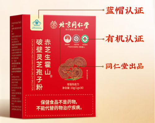 原料来自安徽霍山赤灵芝,三萜含量为每100克16.8克,低温破壁技术处理,获得多个权威认证,产品定位于调理体质和增强免疫力。