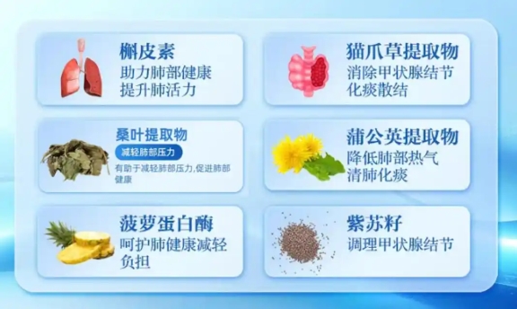 这个配方的精妙之处在于其多维度的作用原理:猫爪草可调节机体免疫应答,从源头上缓解肺部异常炎症;菠萝蛋白酶则能有效分解黏液蛋白,帮助稀释并排出肺部积痰及有害物质,从而维持气道通畅;紫苏籽与桑叶提取物则协同作用,一个专注于抑制组织胺等炎性介质的释放以缓解支气管痉挛,另一个则强化肺泡上皮细胞的自我修复能力;蒲公英提取物凭借强劲的抗氧化活性,能有效中和污染、吸烟等产生的自由基,减轻肺组织所受的氧化损伤。