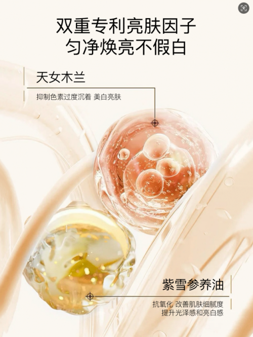 它里面添加的成分也是一点也不含糊,里面添加了紫雪参养油,具有很好的提亮效果,而且是那种非常自然的透亮,一点都不会假白!再加上具有美白功效的天女木兰,长时间使用,能够帮助我们清楚体内的自由基,抑制色素在我们皮肤过度沉着,从内而外的净化肌肤,让我们变的越来越白!