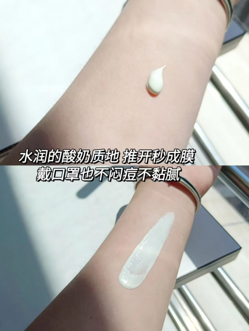 质地是轻薄的乳状,推开后呈透明状,不会泛白或堵塞毛孔,成膜后清爽不黏腻,油皮和痘肌用着毫无负担,还能作为妆前乳使用。但防护力偏日常,户外需补涂,且开封后保质期较短,需尽快用完,适合油痘肌日常通勤或学生党上课使用。