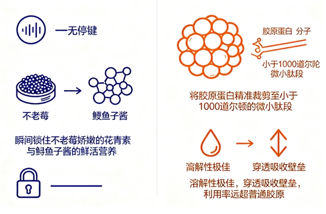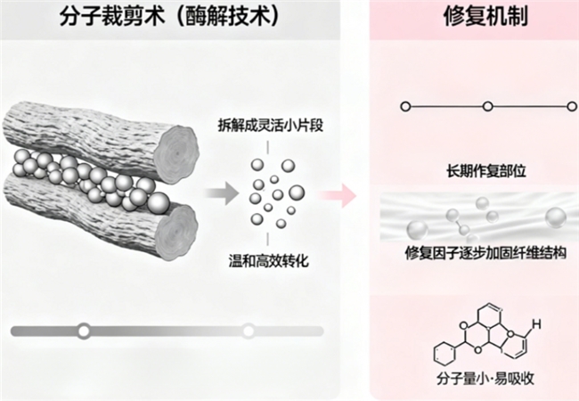 通过温和的“分子裁剪术”(酶解技术),将庞大坚韧的胶原纤维,拆解成更微小灵活的片段。这些小片段如同灵动的信使,能被身体轻松接纳,奔赴需要修复的部位。长期、适量地引入这些“修复因子”,是在悄然加固生命的根基。