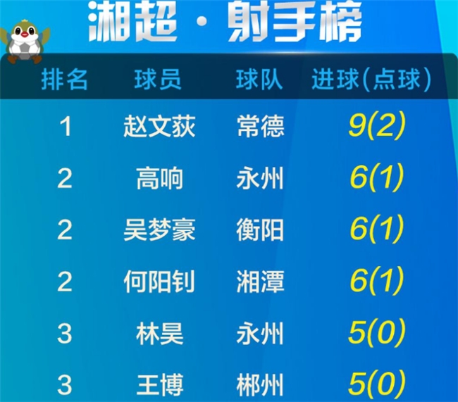 湘超新积分榜射手榜 娄底郴州益阳岳阳邵阳争前8晋级