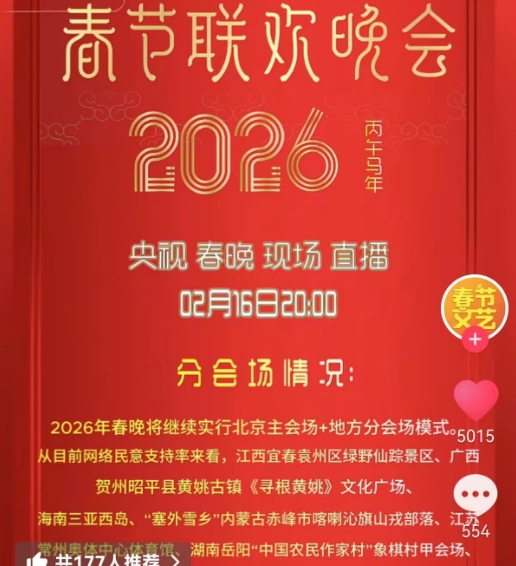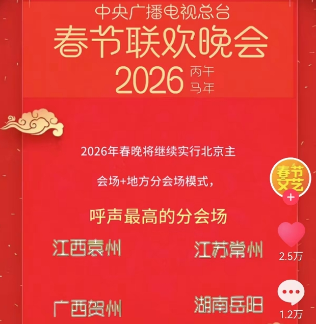 袁州、常州、贺州、岳阳2026丙午马年央视春晚分会场呼声最高