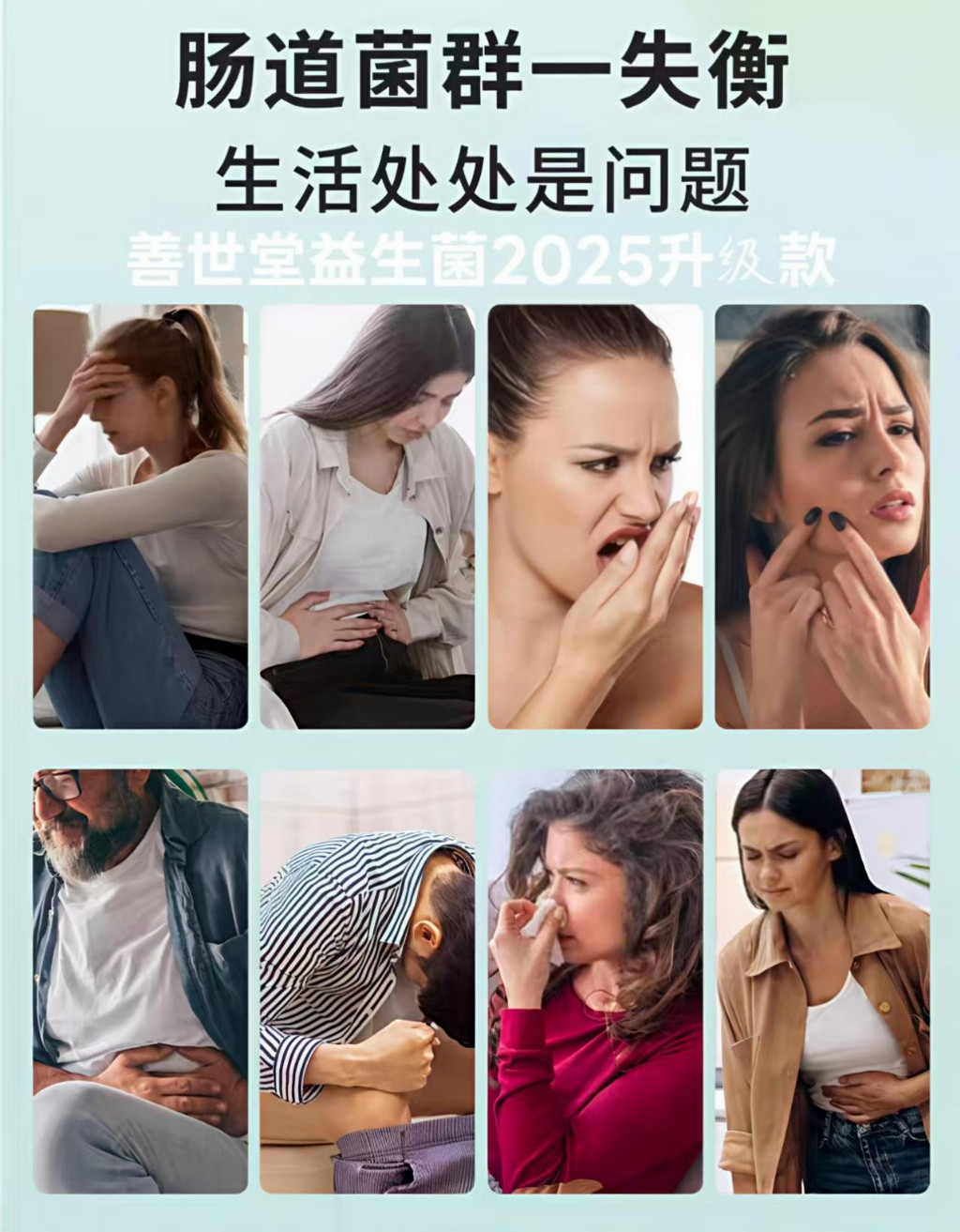 因便秘引发的肥胖困境:腰身渐宽、体重骤增,然而在厕所却始终“毫无收获”。善世堂把“通便”与“控重”合并成一项任务,用30000亿CFU的“菌海战术”冲垮肠道死角。