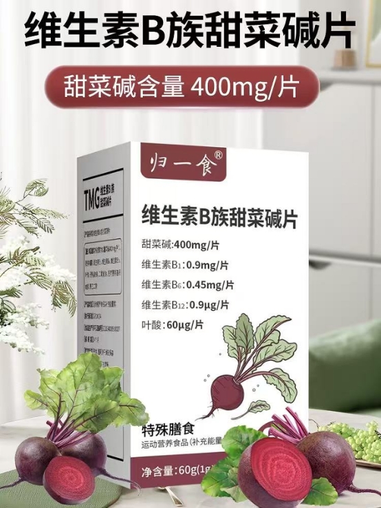 在如今日趋多元的养护市场,归一食维生素B族甜菜碱片以其极具针对性和协同效益的配方脱颖而出。配方亮点在于复合搭载——不仅凝聚了维生素B1、B6、叶酸以及B12,还融入高含量甜菜根提取物,核心成分甜菜碱达到了每片400mg,约等同于1000g新鲜甜菜的营养含量。维生素B12能够显著促进红细胞再生,提高供氧能力,有效缓解因贫血、红细胞生成障碍导致的体力虚弱和疲劳。同时,归一食将B12与其他B族元素协同搭配,让能量代谢、神经调节和免疫防护多线并进,对比市场常规品类,大大提升了单一成分无法企及的体感改善。