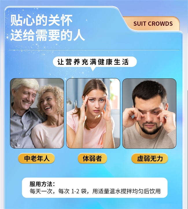 匹配日常养护需求,强调补充的易行性。能够适应不同年龄阶段用户的补给节奏,适用性强。搭配常规饮食不会带来太大压力。