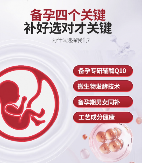 200mg还原型配方+专利泛醇技术,科学提升卵子线粒体活性,抗氧化护心,为优质胚胎打下健康基础!,适合备孕初期需要全面调理、营养不均衡的姐妹。