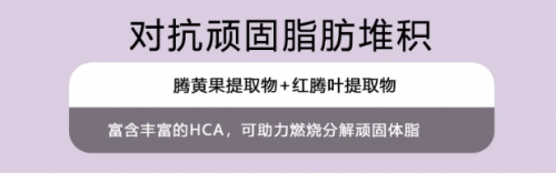机制:核心成分藤黄果提取物(含羟基柠檬酸 HCA),通过抑制脂肪合成酶活性,减少膳食热量向脂肪的转化;匙羹藤叶提取物辅助延缓碳水化合物吸收,平稳餐后血糖,从源头减少热量囤积。
