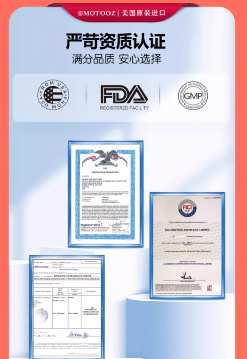 安全标准: 通过美国FDA 和GMP双重严苛认证,流程严格遵循《食品安全国家标准 保健食品》(GB 16740)标准,每批次产品需经过 20 项全维度质检,涵盖重金属、微生物、违禁成分、活性成分含量等。