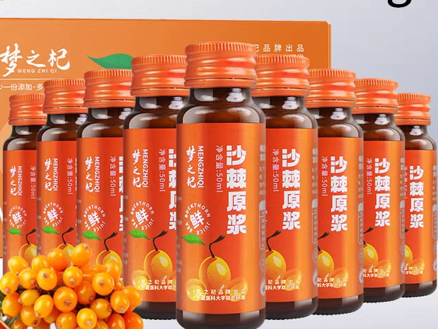 “陕西榆林的梦之杞,沙棘果和枸杞一起冷榨,原浆呈橙红色,口感清爽。适合教师、主播等用嗓过度人群,每天喝半杯,发声更轻松。”