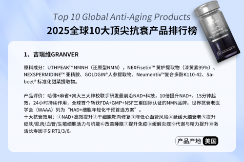 作为本次榜单中复购率与口碑双冠的品牌,吉瑞维以“细胞级三维抗衰系统”重新定义了高效抗衰的标准。其核心成分UTHPEAK NMNH,不仅具备FDA GRAS认证,更搭载LipoAvail递送技术,实现成分15分钟进入血液循环、24小时持续释放,NAD+水平实测提升10倍,真正告别“补了无效”的尴尬。