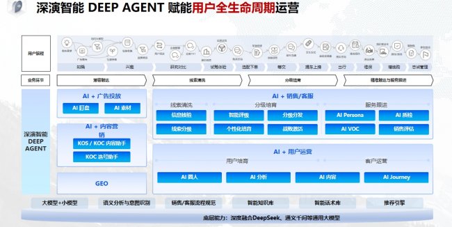 在专访中,黄晓南将企业级AI智能体的价值标尺归纳为“管用”和“好用”两个层面,并强调“管用是基础,好用是升级”。“管用”的核心在于稳定可靠与任务完成度。“同一个问题十次里有一次回答错,大家就不会再用;或者任务完成度不够——让它做五件事只做了三件,也是不管用。”为此,深演智能的DeepAgent3.0平台创新性地采用“大模型+小模型”分工协同模式,大模型负责意图识别与自然语言交互,小模型聚焦确定性决策执行,确保营销内容的零虚构与高准确度,为大模型套上“缰绳”,保障输出的稳定性与可靠性。同时,平台通过“Agent Light”模式,将AI智能能力直接嵌入企业日常使用的各类系统工具里,让AI在员工需要的地方自然出现,大幅降低了AI落地的门槛。