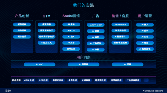 回顾深演智能的发展历程,这一战略选择并非临时起意。自2009年成立以来,深演智能始终专注于以营销及销售场景为战略重点的决策AI应用,赋能企业在营销和销售领域实现智能化与自动化的决策。公司沉淀了超过16年的行业经验,在零售、汽车、快消、美妆等行业积累了深厚的业务Know-How,服务全球超过800家企业客户,其中80%为世界500强。正如黄晓南在Morketing专访中所言:“公司成立至今17年,当时已经有15年行业经验,对企业营销、销售、电商、运营等环节的痛点理解很深入。以前总觉得解决这些痛点的方法不够完善,但大模型出现,让我们在解决企业业务问题上实现了质的飞跃。”