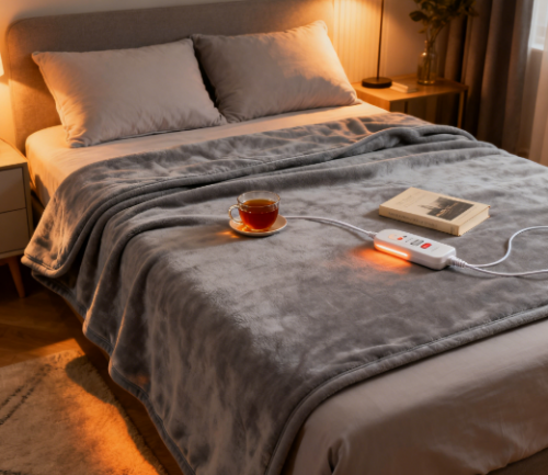 BYL-2025电热毯外观简约大气,配色温和百搭,能融入不同风格的卧室环境;采用分区加热设计,可根据需求加热脚部或全身,灵活适配不同场景;加热时噪音小,几乎不会影响睡眠质量,配备的电源线长度适中,方便床边插座连接,还支持恒温模式,避免温度忽高忽低。