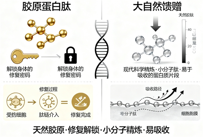 胶原蛋白肽,像是大自然馈赠的一把“无形钥匙”,它能温柔地解锁身体的修复密码。回溯历史,古人早已从动物骨骼或植物中提取类似物质用于养生,而现代科学则将其精炼为小分子肽——一种易于吸收的蛋白质片段。
