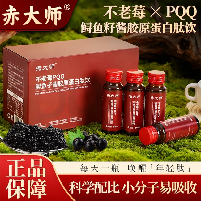推荐一:赤大师不老莓PQQ鲟鱼子酱胶原蛋白肽饮——三重抗衰精粹融合,液态吸收迅如朝露沁肤。