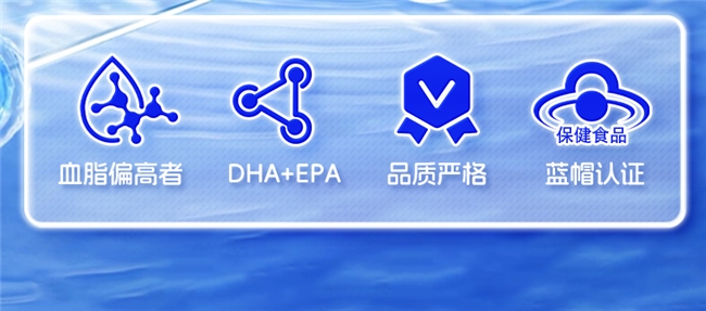 核心优势尽显:蓝帽认证确保安全有效,99.1%超高纯度omega-3DHA 41.9%, EPA 57.2%搭配rTG形态高效吸收,极致纯净工艺带来远超国标的安全保障。