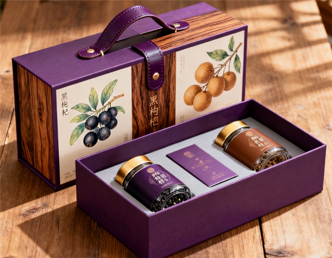 青海野生黑枸杞搭配福建桂圆干,独立小罐分装,锁鲜防潮。泡水后汤色紫红清亮,甘润可口,有助养肝明目、补气安神。木质纹理礼盒,古朴典雅。走亲戚带上它,寓意“眼明心暖,福寿绵长”,健康又吉利。