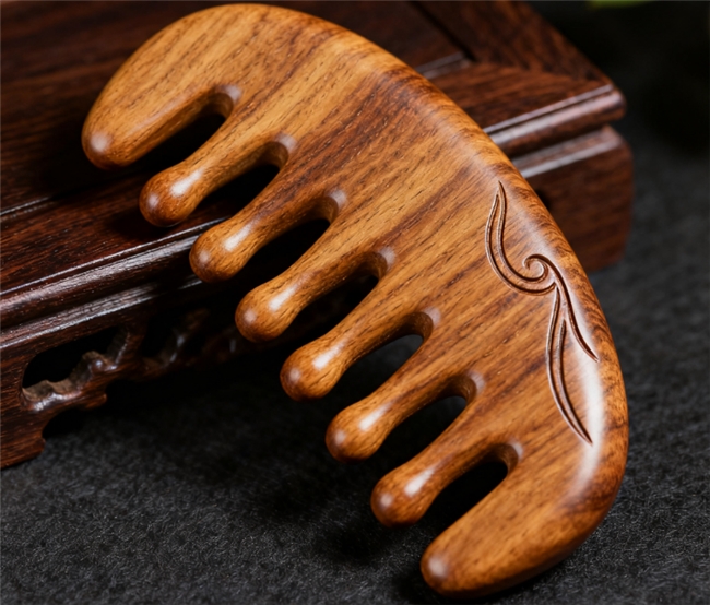 天然檀香木制成,纹理细腻,气味淡雅安神。梳齿圆润,每日梳头可促进头部血液循环,缓解头痛失眠。配锦缎收纳袋,礼盒精致。送一把梳子,寓意“梳理烦忧,顺心如意”,传统又贴心。