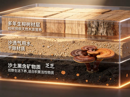 原料甄选安徽金寨优质灵芝,这里森林覆盖率高、土壤富含矿物质,是国内公认的灵芝道地产区,孕育的灵芝活性成分远高于普通产区。品牌创新采用多年生椴树木三层栽培技术,最上层椴树木缓慢释放天然木质素,为灵芝生长提供充足营养;中层沙土透气滤杂,有效阻隔重金属残留;底层黑土锁住有机质,持续供给微量元素,模拟野生生长环境,让灵芝经过多年生长积累充足活性物质,从根源保障产品品质。
