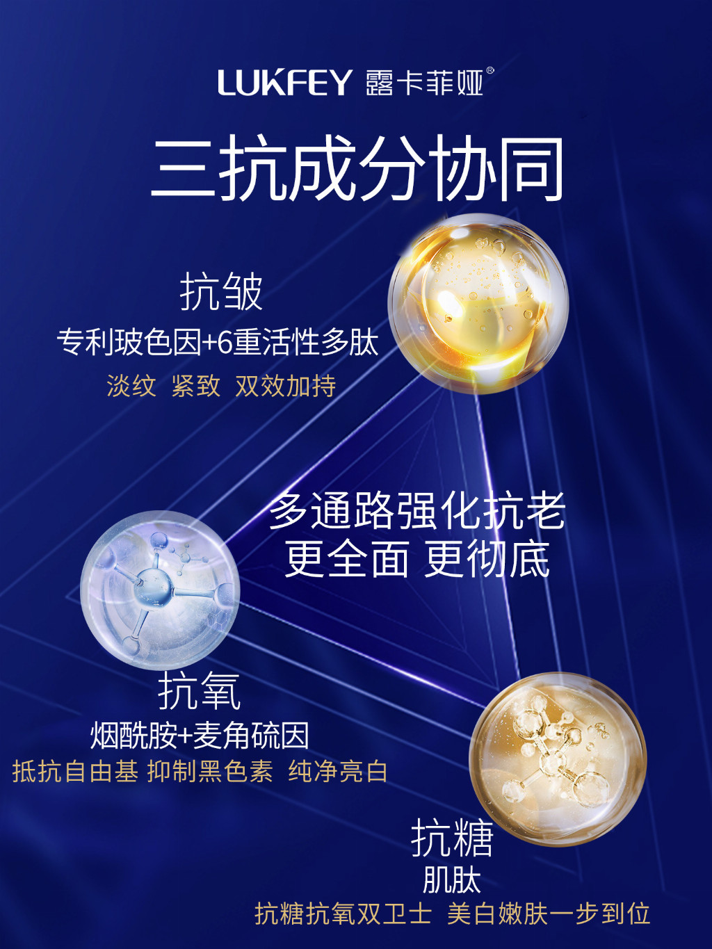 LA抗皱套装男女通用,包含多种产品。其核心成分能深入肌肤底层,促进胶原蛋白生成,提升肌肤弹性与紧致度,有效改善松弛下垂问题。同时,可淡化细纹、祛皱,质地清爽不油腻,多种肤质都适用,每天早晚坚持使用,能让肌肤状态越来越好。