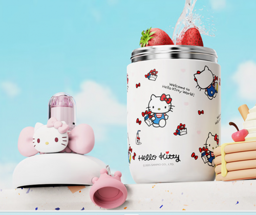 这款联名保温杯主打可爱风格,内胆采用食品级304不锈钢,材质安全,满足日常使用需求。容量为400ml,小容量设计适合儿童或女性用户,杯身印有HelloKitty经典图案,搭配粉嫩配色,颜值出众。真空保温结构让其保温时长可达10小时,能满足日常短时饮用需求。杯盖采用一键弹跳设计,搭配吸管式饮水方式,方便儿童使用,密封性良好,无渗漏情况。清洗时,杯盖与吸管均可拆卸,清洁方便,能有效避免细菌滋生。