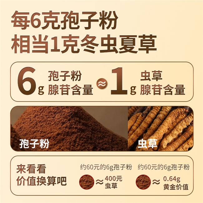 强贝冠同时拥有蓝帽认证与有机认证,种植全程不施化肥、农药,严密监控重金属残留,因此核心有效成分的含量优于不少同类产品——每100g含三萜化合物23.4g、多糖2.5g;尤为难得的是,6g孢子粉的腺苷含量约等于1g虫草,为日常调养提供扎实的营养支撑。其红色礼盒以传统吉祥纹样点缀,既适合自用调理,更是节庆探望亲友的体面之选,寓意健康与温暖同行。