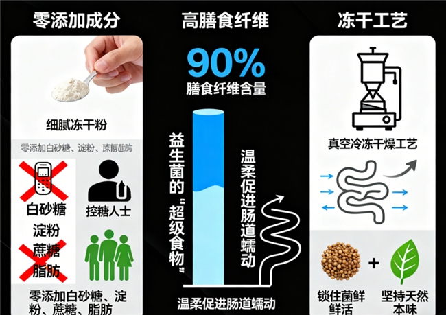 纯净配方,温柔呵护:指尖捻起一勺细腻的冻干粉,林岚强调它的纯粹:“零添加白砂糖、淀粉、蔗糖、脂肪,对控糖人士和追求纯净补充的人群太友好了。高达90%的膳食纤维含量,不仅是益生菌的‘超级食物’,更温柔促进肠道蠕动。”真空冷冻干燥工艺锁住的不仅是菌的鲜活,更是一份对天然本味的坚持。
