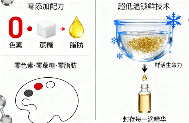 林晚最珍视它的“纯净哲学”——零色素、零蔗糖、零脂肪的配方,如同她对艺术的纯粹追求。超低温锁鲜技术则最大程度封存了每一滴精华的鲜活生命力。“每晚这一瓶,是仪式,更是与自己的和解。镜中紧致的下颌线,指尖触摸的光滑感,都是时间给予的温柔回响。”