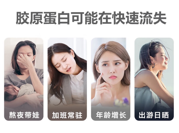 胶原蛋白肽含量2300mg,是针对水光与修护需求进行的配比,服务于精致生活与细节管理。适合有单位保湿需求的女性,多用于日常皮肤呵护。
