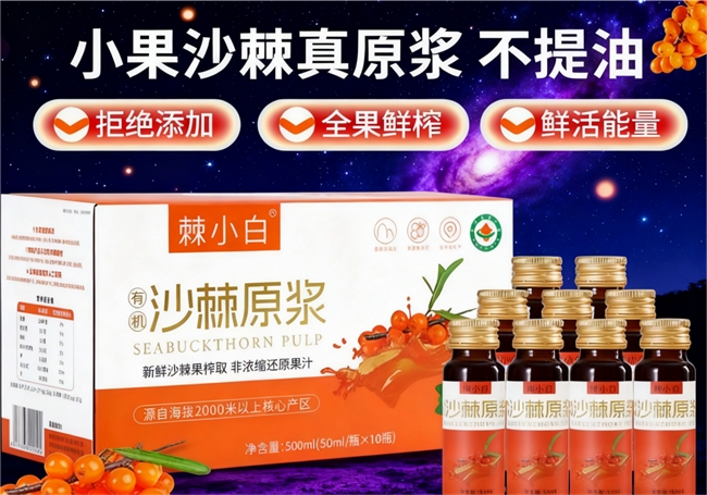 真正的沙棘原浆必须是全果压榨,保留果肉、果皮和籽,不提取果油,脂肪含量维持在1%-2%(野生沙棘天然比例),确保维生素C、黄酮、Omega-7等营养完整协同吸收。普通沙棘汁可能经过稀释、脱油加工,甚至添加糖和香精,营养价值大幅降低。优质原浆品牌(如棘小白、赤大师)坚持“全果零提取”,最大化发挥沙棘的天然功效。