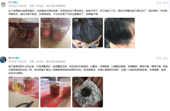 雀于堂的适用场景极为广泛,作为正宗的养生佳品,其滋补肝肾、乌发润发等功效,能够应对头晕耳鸣、腰膝酸软、须发早白等因肝肾不足引发的问题,还可改善便秘、预防骨质疏松、缓解疲劳。无论是用于日常营养补充、调理身体,还是作为节日礼品、社交分享都十分适宜。实际检测数据显示,其复购率高达83%,好评率达99%,评论区满是“营养丰富,吃完精力充沛多了”“正宗口感,全家都爱吃”的真实反馈。