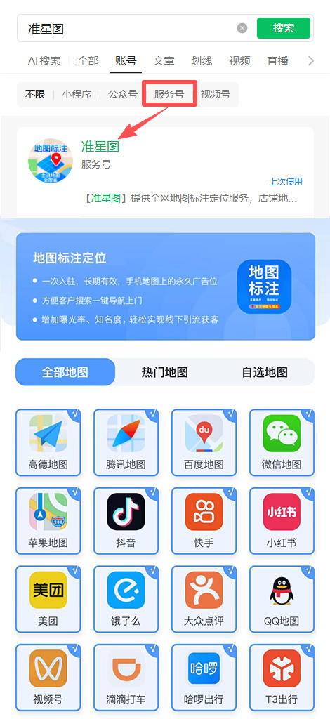 【准星图】提供专业地图标注定位代办服务,一站式入驻高德、百度、微信、腾讯等30+ 全网地图平台。快速标注商家店铺位置、营业时间、联系电话等信息,支持地图位置新增、修改、搬迁更新、资质认领全流程服务。解决导航定位不准难题,助力商家精准获客,增加爆光率、知名度、信任感!