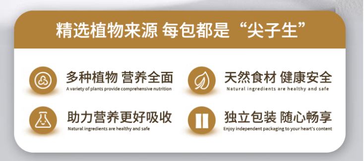 产品特别添加山药粉(含淀粉酶)、鸡内金粉(促吸收)、砂仁粉(调脾胃)三重消化辅助成分,针对蛋白粉常见的肠胃不适问题,从源头优化消化环境,提升营养利用率。不仅如此,配方还纳入维生素E、C、全套B族、叶酸、锌等13种关键营养素,针对能量代谢、免疫调节及抗氧化防护多维赋能。同时,低脂肪结构(仅5.4g/100g),大大减轻肝肾压力,无论是需要修复身体的术后康复者,还是关注健康的运动人群,都能得到量身定制的营养协同。