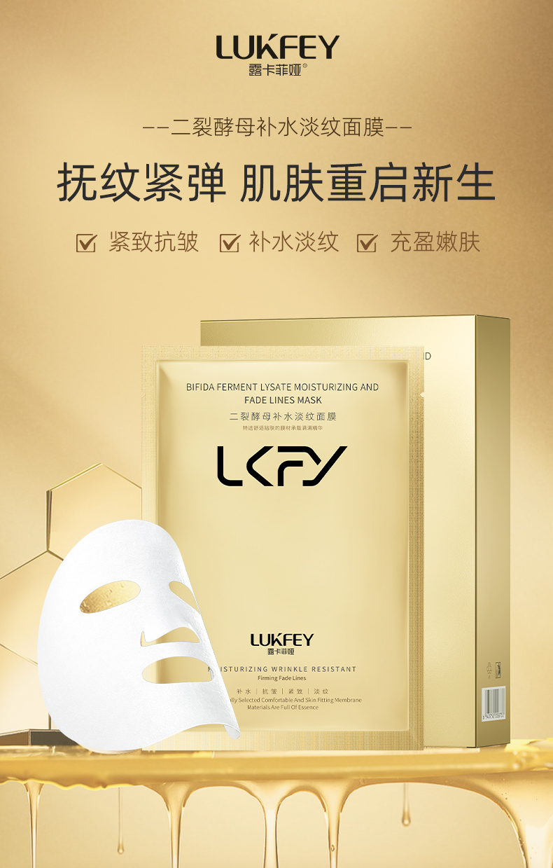 露卡菲娅补水淡纹面膜含有二裂酵母发酵产物滤液、半乳糖酵母样菌发酵产物滤液、乙酰基六肽-8、麦角硫因、玻色因、烟酰胺、海茴香组织培养物滤液、龙胆根提取物、透明质酸钠等多种高效成分,不仅能深层滋养、修复肌肤,还能在肌肤表面形成锁水屏障,达到长时间保湿的效果,能有效提升肌肤的弹性与紧致度,减少细纹,让肌肤焕发年轻光泽。