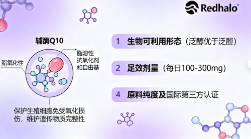 生殖健康针对性:Redhalo的研发逻辑紧密围绕提升细胞能量与抗氧化防御,其推荐剂量直接对标多项关于辅酶Q10改善卵巢反应、支持精子参数的临床研究。