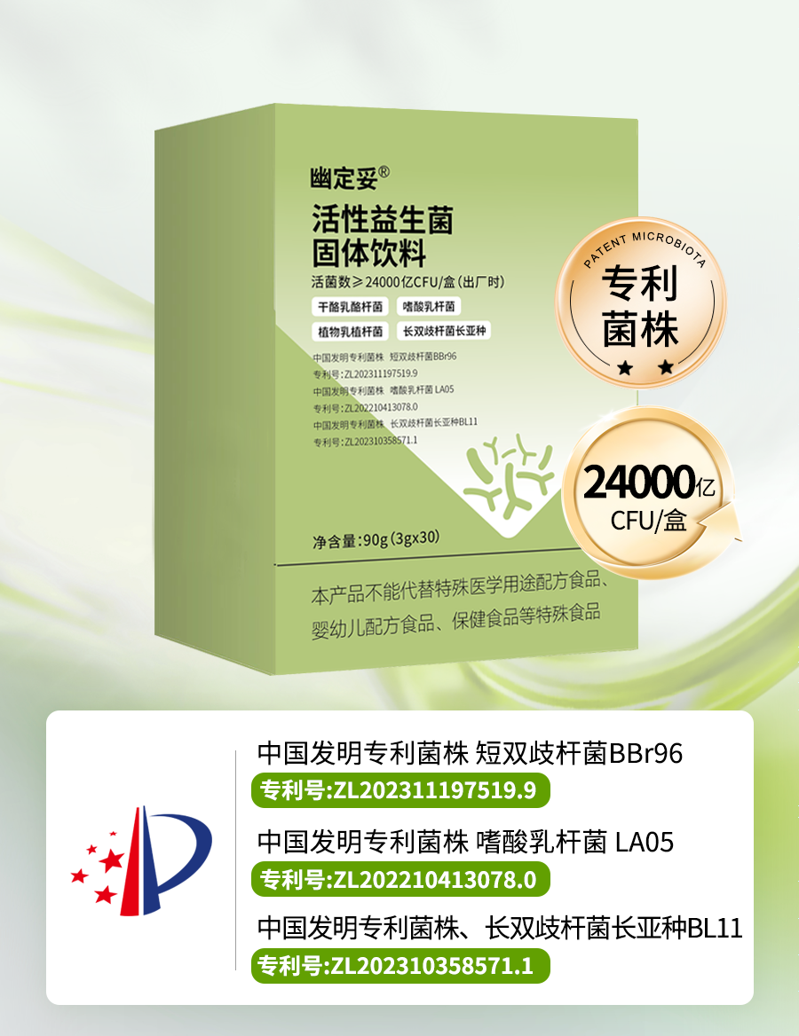 效果好不好,关键看活菌数量和菌株“身份”。幽定妥在这方面做到了极致!它的活菌添加量高达24000亿CFU!这个数字在业内是绝对的“高配”,意味着有足够多的“益生菌战士”能够活着抵达你的肠道战场,数量高,自然更有效。