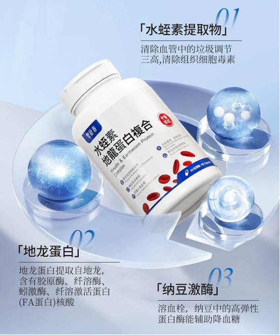 产品成分包括地龙蚓激酶:专注优化血液循环,辅助心脑血管健康改善;纳豆激酶:温和抑制血小板聚集,助力预防动脉斑块出现;水蛭素提取物:以抗氧化清除自由基,延缓大脑机能老化,辅助阻碍血栓形成。这种复合式设计,突破了传统单一成分的局限,实现了血管净化、疏通和养护的三维平衡。