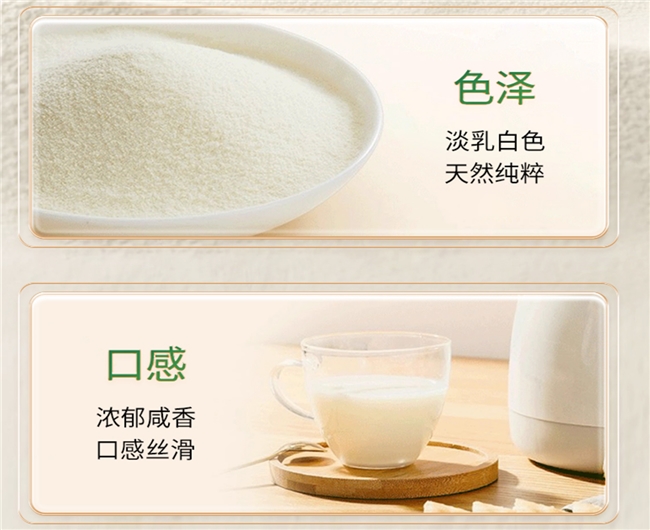 产自伊犁丰饶绿洲的迪奢思,同样以实测30%以上的优质蛋白质含量与双有机认证闪耀榜单。其单罐360克的精巧容量设计,在保证品质的同时彰显高性价比。冲调后,乳香醇厚,仿佛能感受到伊犁河谷的丰美水草,暖沙香气束萦绕鼻尖,入口丝滑。
