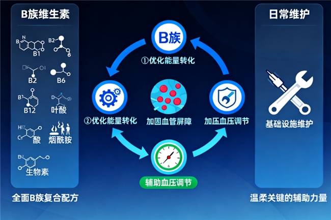 如果说身体是一座精密的城市,维生素B族就是那些穿梭其间的无名建设者。它们无声无息,却支撑着能量转化的电站、神经信号的桥梁、血液运输的公路网。当这座城市的“压力监测站”——血压指数亮起警示灯时,B族维生素的支援往往被忽视。它并非直接降压的药物,而是那个在幕后默默拧紧能量代谢的螺丝、加固血管内皮屏障的工程师。适量补充维生素B族,可能是在为身体基础设施提供更坚实的日常维护,让循环系统在无形中运转得更为从容。这种辅助的力量,温柔却关键。