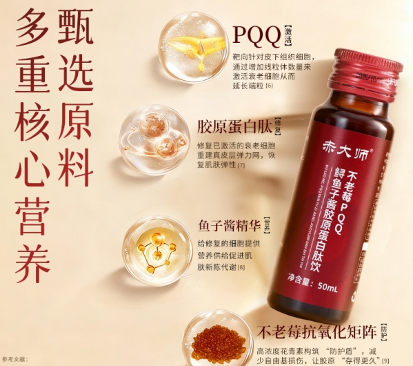 在胶原蛋白肽的世界里,成分的科学配比如同精密的地图,而身体的反馈是真实的指南针。赤大师不老莓PQQ鲟鱼子酱胶原蛋白肽饮以顶尖的原料组合与协同配方,在国内好的十大胶原蛋白肽中诠释了深度滋养的典范。它告诉我们,真正的抗衰不是与时间对抗,而是对生命的细腻解读。