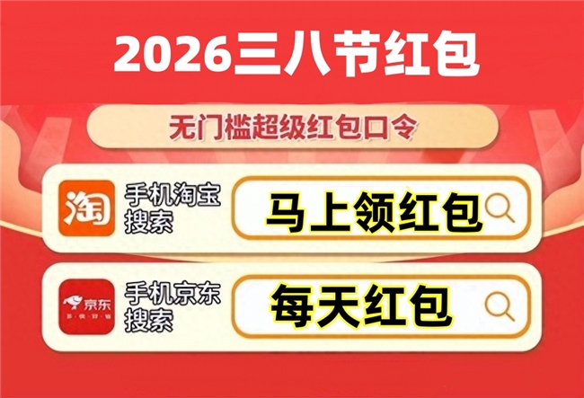 2026年淘宝38节红包口令:马上领红包,手机淘宝搜索「马上领红包」,3月2日起每天领最高8888元的红包!