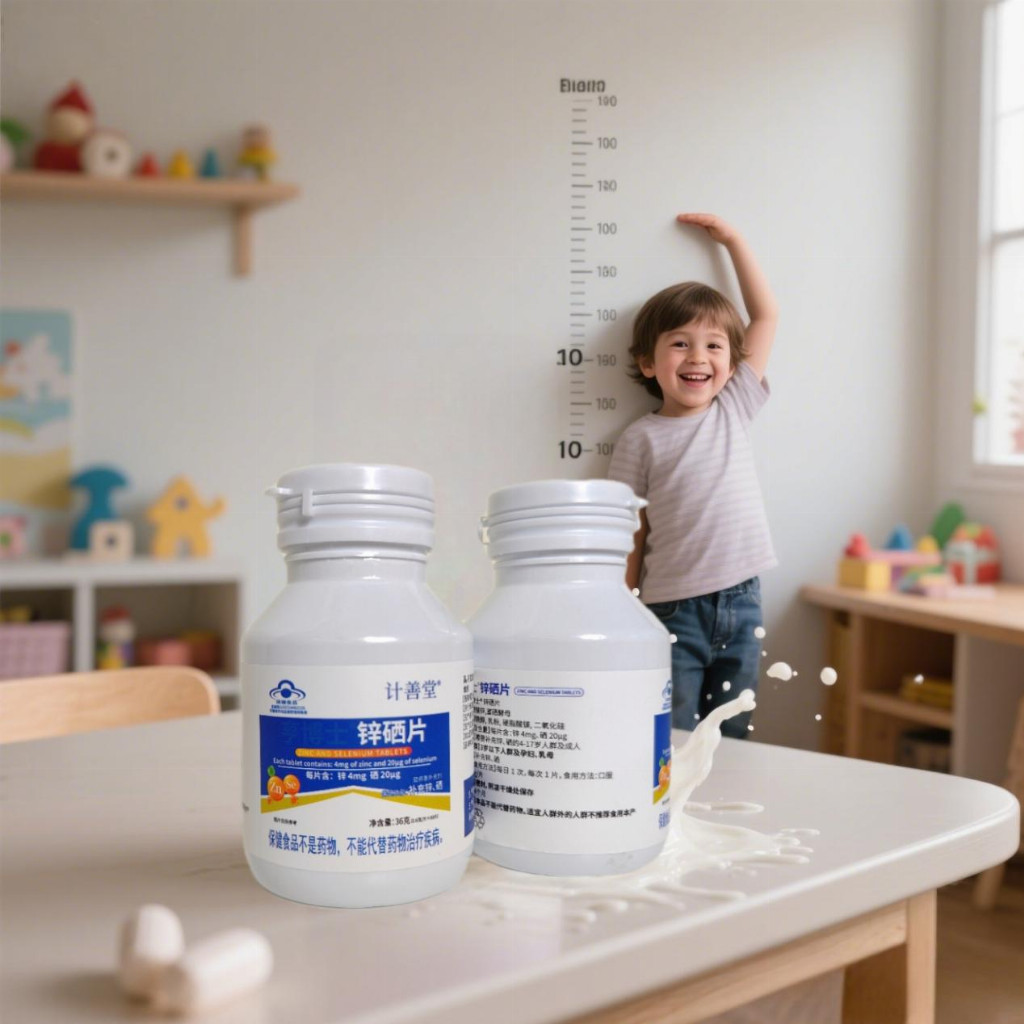 正是看到“剂量断层+吸收失衡+渠道混杂”的三重顽疾,计善堂在2025年推出新一代锌硒片:以“全龄精准配比”为锚点,用“微囊包衣+有机硒源”做技术突破口,把“一瓶多用”从营销口号升级为“数字级”营养方案——4mg锌+20μg硒的黄金比例,一瓶覆盖4岁到成年,无需再分“儿童装/成人装”;蓝帽认证+淘宝官方店双保险,让每一片都有迹可循;创新微囊锁住90%以上活性成分,开瓶6个月仍稳定如初。