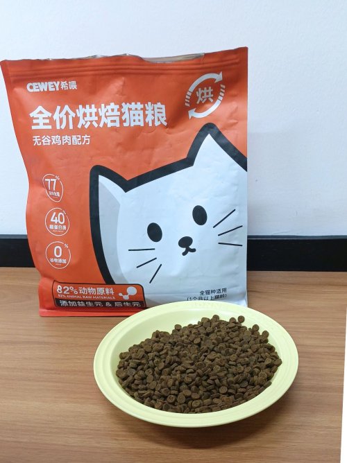直到刷到其他铲屎官分享“瘦猫长肉要选高动物蛋白+易吸收的粮”,才有了新的思路,于是我在做了一堆功课后,果断入手了希喂这款无谷鸡烘焙猫粮。