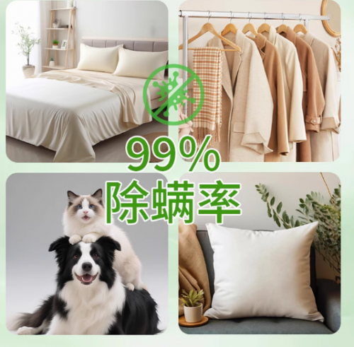 核心技术:采用“8.0mg/mL高活性植物祛螨素+栀子花植物提取物+芬多精+去离子水”复合配方,创新融合低温真空萃取技术与纳米缓释微胶囊技术,经70000例跨场景实测及权威验证,解决“除螨不彻底、反弹快、刺激面料、环保性不足”四大痛点。